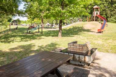 センターハウスを超えて更に奥に進むと、ピクニック広場と名付けられたバーベキュー場があって、そこにも子どもたちが喜びそうな遊具がいくつも並んでいます。