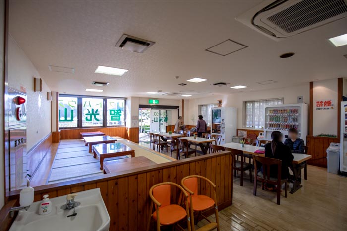 レストハウス内部はレストラン時代とほぼ変わらず、6人掛けテーブルが1卓、4人掛けテーブルが2卓、2人掛けテーブルが1卓、小上がりに4人用の座卓が4卓あり、小さなお子さん用の椅子も用意されています。合計すると30名程度は収容できる施設です。