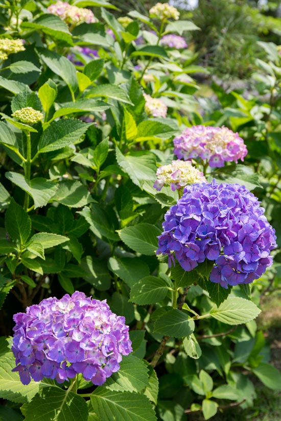 廻遊式池泉庭園「花田苑」のあじさいは、名所というほどの株数はありませんが、長屋門から入った右手の池端と左に回り込んだ坂道の途中と、右手の奥の小川沿いに少しだけありました。