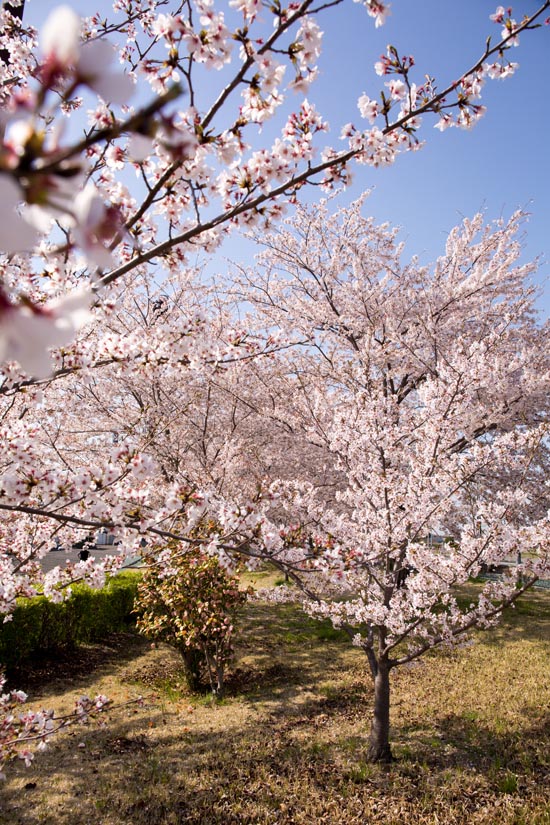 そのほかのエリアにもたくさんの桜がありますが、遊具のある広場(3あたり)や、「8 築山」あたりから「17 テニスコート」あたりまで川沿いに植えられた桜並木もまだまだ若いので、これからが楽しみな桜の名所でしょう。