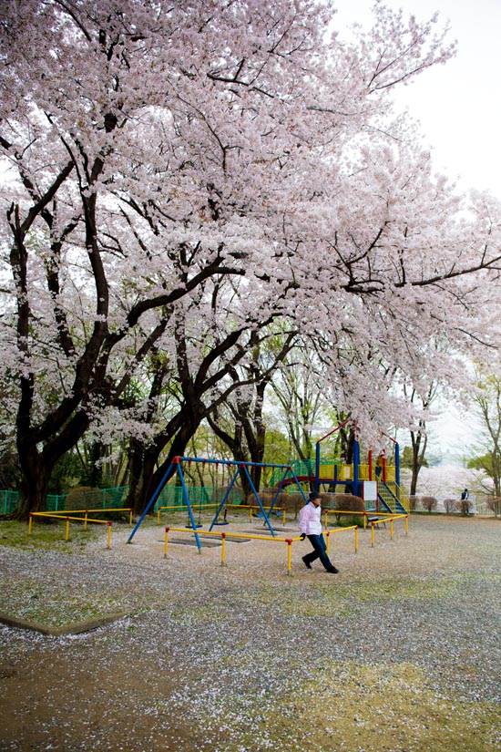 なかなかタイミングがあいません。前回(2009年)に来たときは雲一つない青空だったけどかなり散っていて、今回は散り始めだけどほぼ満開なのに天候が……。