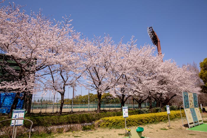 まずはスタジアムから隣の健康遊具広場の桜から掲載します。こちらの桜もすばらしい。