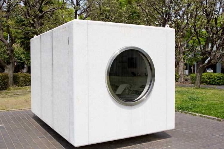 その隣にあるのが立方体の不思議な物体。これは埼玉県立近代美術館を設計した故黒川紀章氏が設計した「中銀カプセルタワービル」の住宅カプセルです。中は実際の建物の構造に近いです。