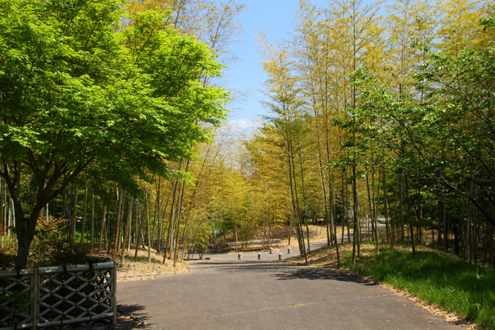 | 竹林に挟まれた道をちょっと登ります。 |