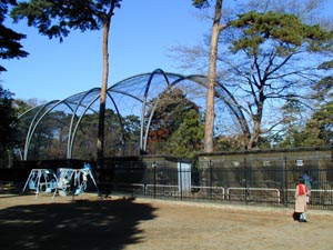 | 左は児童遊園地横にあるアスレチック。小さい子向きですね。右がその広場から動物園の鳥舎を眺めたところ。両写真とも2001.12.9撮影です。 | |