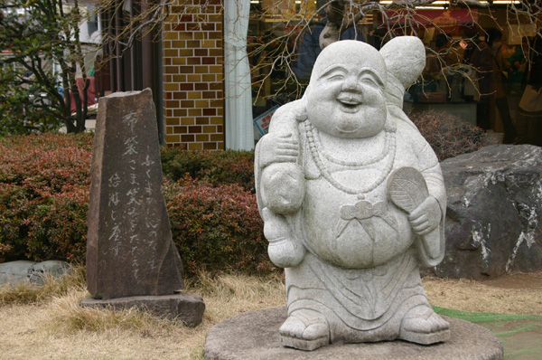 | 「ミートショップ」左横にいらっしゃる布袋様。由来はわかりません。若干宗教がかってますから…。 |