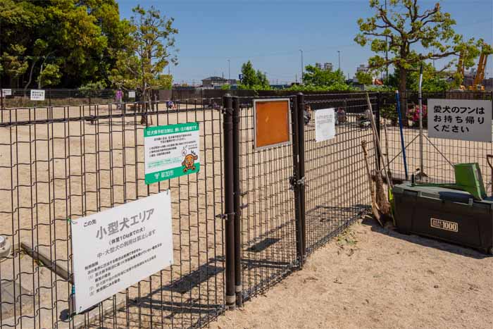 | マナーアップゾーンと小型犬エリアの入口。 左がマナーアップゾーン、右が小型犬エリア。 |