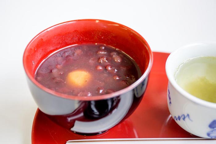 | 栗入りぜんざい こぶ茶つき 450円。 |